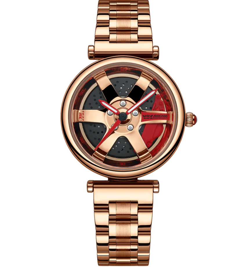 Accelerate your look with the Bellucci & Co Volk TE-37 RAYS Wheel Watch, a refined statement of automotive-inspired luxury. Crafted with a robust stainless steel case and powered by a precise Miyota Japanese quartz movement, this timepiece delivers reliability with every second. Beneath scratch-resistant sapphire glass, the distinctive 3D disc brake and caliper design adds an unmistakable motorsport edge. Designed for true car enthusiasts, it perfectly balances elegance, performance, and passion—right on your wrist.